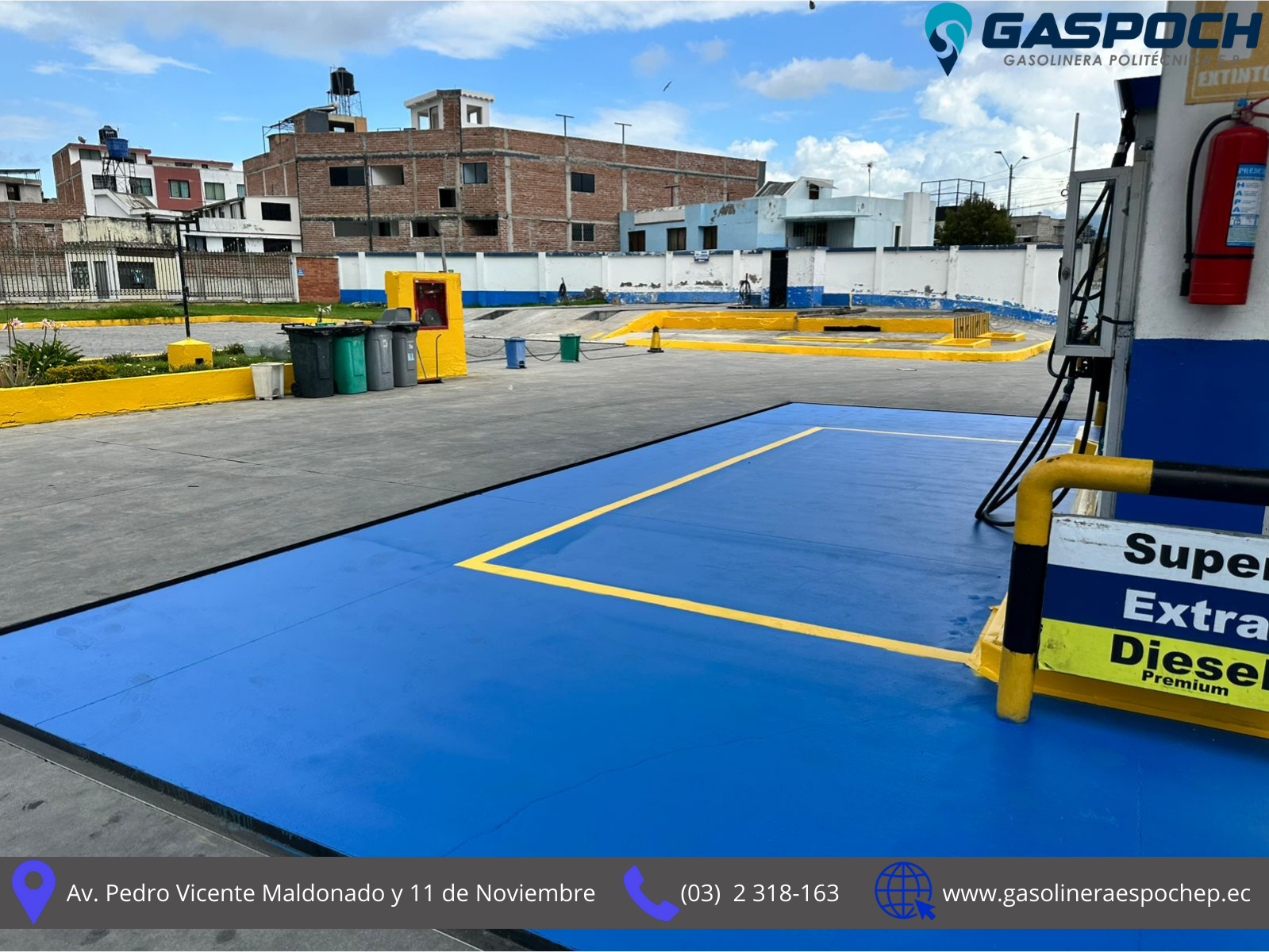 Con gran éxito se desarrolló el mantenimiento de las distintas áreas de la Estación de Servicios ESPOCH Gasolinera Politécnica E.P. para su mayor comodidad, hemos renovado nuestras pistas con una nueva capa de pintura e instalado señalización actualizada para vehículos ligeros y transporte pesado. La mejora de nuestras instalaciones es el inicio constante de la innovación, para brindarte un servicio más seguro, ágil y eficiente.